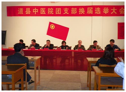 本网讯 (通讯员:王诚喜)2011年11月22日下午19:00,道县中医院团支部换届选举大会在本院四楼大会议室召开。院党总支部书记、院长、副院长、办公室主任、工会主席、纪检书记、上届团支部书记出席会议。共有60名团员参加了本次大会。会议由党支部委员陈正标主持。