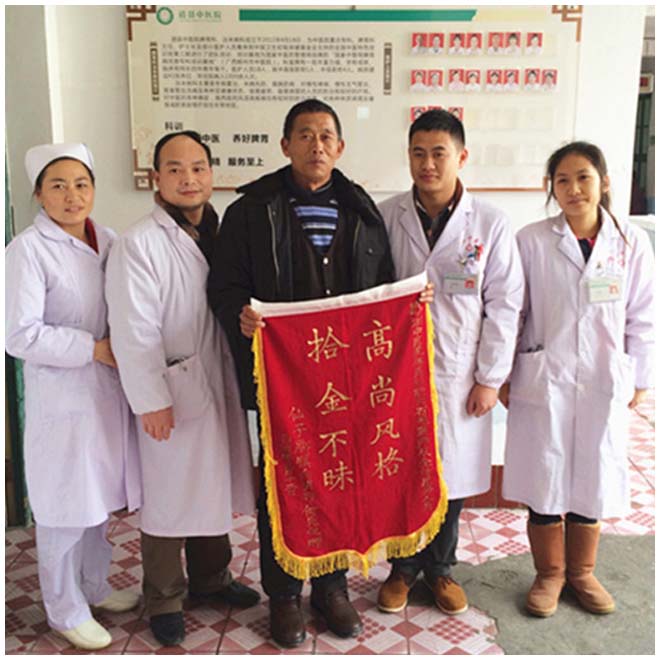 其实这只是中医院实行全面医疗优质服务的一道缩影,如今,拾金不昧、助人为乐已成为道县中医院人的一种慎独而自觉的行为,且这种行为已蔚然成风。据悉,今年来,道县中医院职工拾金不昧现金9991元,手机及各类银行卡、信用卡、加油卡、存折、采伐证等若干证件,均想方设法交还给失主。近年来,中医院经医疗服务办归还失主财物达4万余元,拒收红包18400元,捐款17975元,收到锦旗60面,感谢信15封。“拾金不昧”,虽然不是新闻了,但这种社会正能量和美德的传承,给生活、给社会提供了一种超越性的道德向度,还是让人倍感欣慰并值得继承和发扬的。道县中医院人拾金不昧的行为,充分体现了中医院人高尚的道德情操和朴实的精神风貌,在社会上树立了朴实诚信的形象,既弘扬了社会的正气,也赢得了良好的社会声誉。让我们为道县中医院点个赞吧!