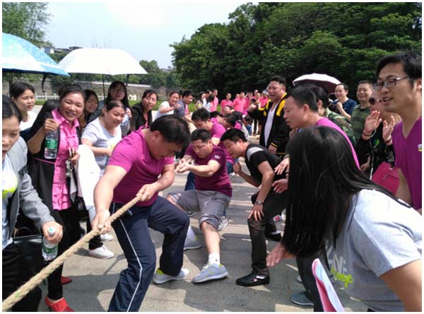 拔河比赛是一项深受群众喜爱、能充分展示团队合作精神、体现团结、拼搏、争创胜利的传统体育项目。据悉,本次活动全县共有23个代表队参赛,每个代表队12人,其中女职工4人。在风景优美的比赛现场,到处洋溢着欢声笑语,呐喊声、号子声此起彼伏,我院运动员在小组赛中,面对强劲对手奋力拼博着,啦啦队员们个个热情高涨,紧紧跟进,为我们的运动员加油呐喊。经过两个多小时的激烈角逐,我们的运动员在后备队员准备不足的情况下,取得了可喜的成绩——小组赛第三名。虽说没有冲出小组,但我院运动员和啦啦队的奋力拼博还是充分体现了全院职工团队合作精神和积极向上的活力,也赢得了观众们的热烈掌声。