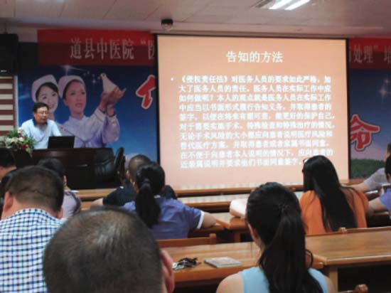 道县中医院举办《侵权责任法》实施后医务人员应如何维护自身权益专题讲座