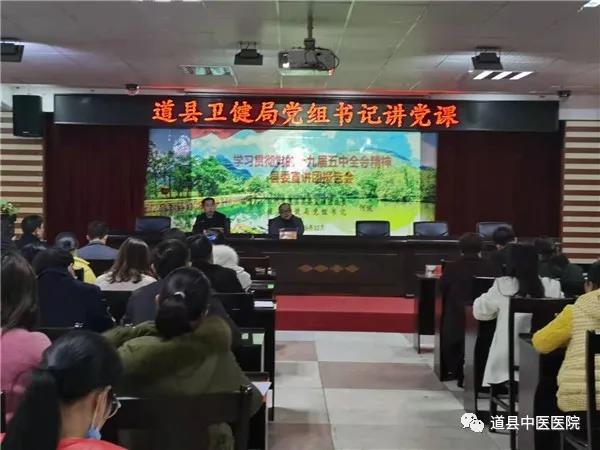 本网讯(通讯员:唐海莲)12月23日下午,道县中医医院在大会议室组织全体党员、干部职工参加县委宣讲团组织的《道县学习贯彻党的十九届五中全会精神县委宣讲报告会》,道县县委宣讲团成员、道县卫健局党组书记何健带领大家深入学习贯彻党的十九届五中全会精神和习近平总书记湖南考察重要精神。