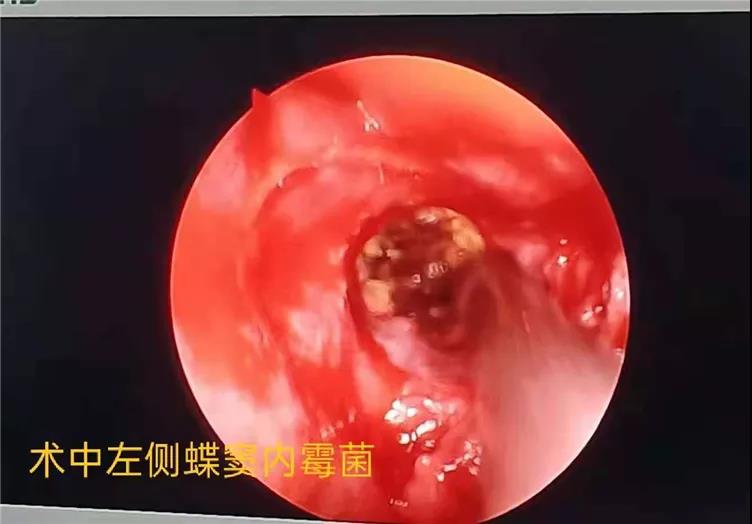 经耳鼻喉科、眼科、肿瘤科会诊后,结合CT及临床症状初步确诊患者患霉菌性鼻-鼻窦炎。耳鼻喉科主任何兵建议转入耳鼻喉科择期行鼻内窥镜手术。患者血压、血糖控制后好,何兵主任主持科内讨论后决定在鼻内镜下行鼻腔探查术+左侧蝶窦开放术。