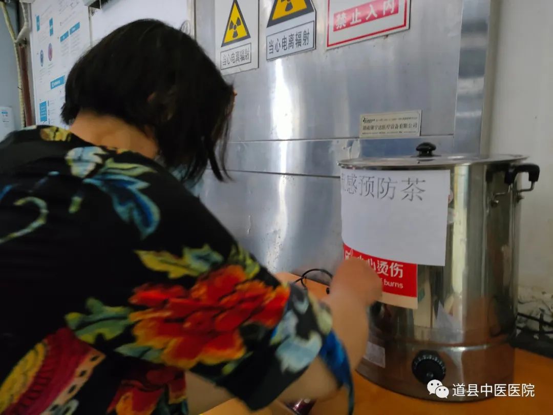道县中医医院的医疗专家根据多年的临床经验和近期各类人群出现的流行感冒症状,辨证施治,精心组方,拟定了三类甲型流感预防中药方(儿科发热方、儿科非发热方、普通人群预防方),由药剂科牵头,各科室密切协作,精心调配,在发热诊室、门急诊大厅、儿科输液室以及各科室住院部等醒目位置放置流感预防中药茶,供大家免费饮用。病友们对县中医医院精心熬制、免费提供的流感预防中药茶接受程度高,反响好,好评不断。