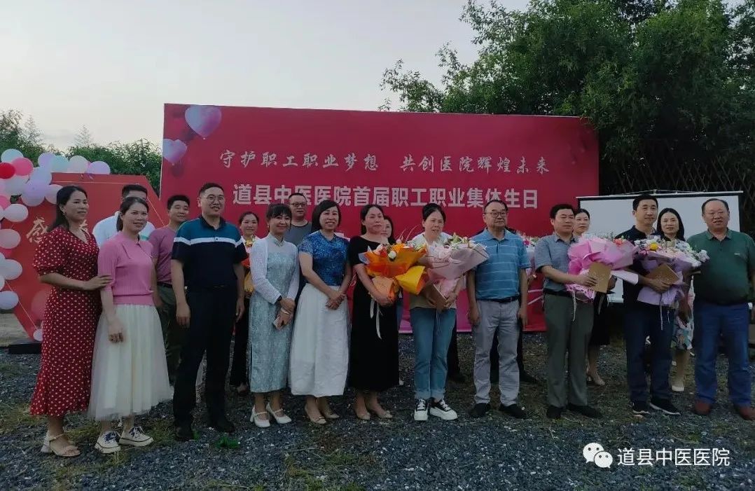 职业生日庆典上,工会为“寿星们”精心准备的职业生日卡片、生日蛋糕和鲜花寓意深刻,寄语广大医务人员“医者仁心,初心不改,未来可期。”;感恩有你,医路同行,院团委表演的“我爱上班”朗诵节目诠释了道县中医人乐于奉献、累并快乐的职业真谛,在道县中医医院这个团结奋发的大集体,闪亮的蜡烛点燃医务人员一颗颗跳动的心,心因梦想而精彩,集体因团结而自豪,多年来,道县中医医院始终以守护职工职业梦想为己任,为职工搭建广阔的职业平台,培养了一支敢拼、敢想、敢做的优秀人才队伍,推动医院一步步从当初的中医小诊所到现今的三级中医医院,凝聚了一代又一代中医人不服输和敢超越的可贵品质,引领全院广大干部职工踔厉奋发、砥砺奋进、携手共创医院辉煌未来。
