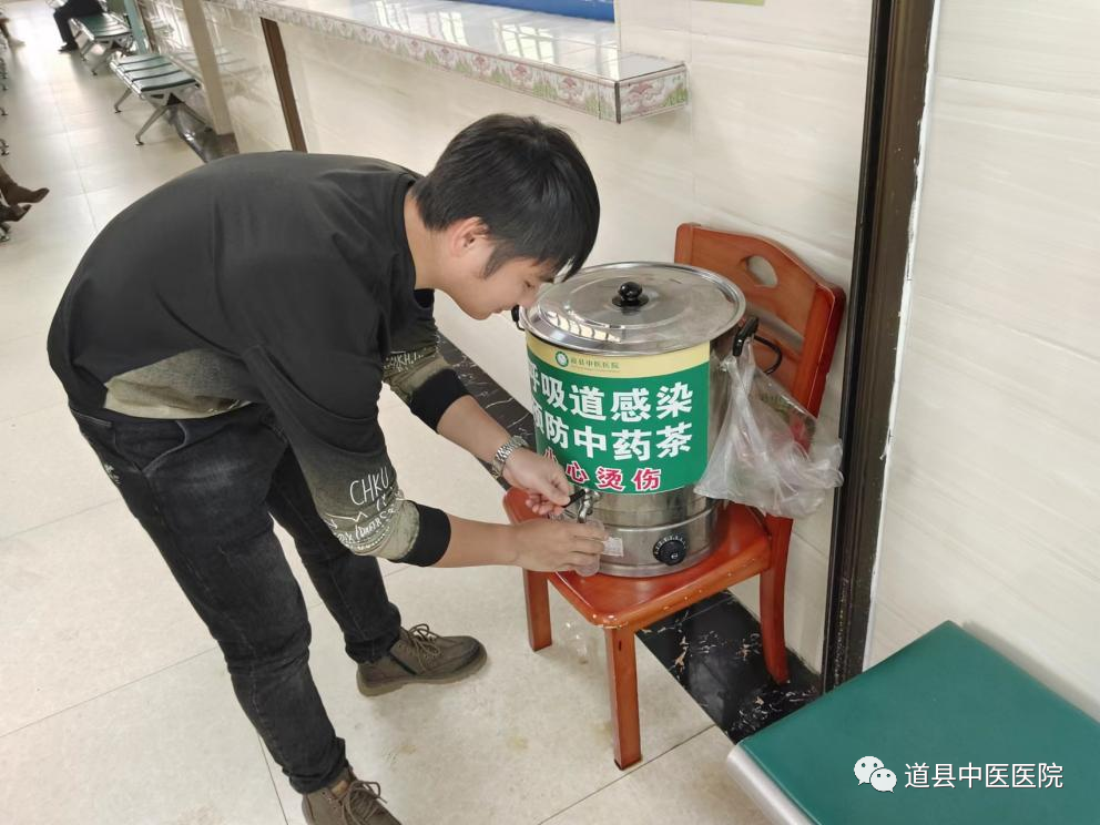 (通讯员:陈丽娟 陈志辉 唐海莲)今年入冬以来,全国多地冬季呼吸道疾病流行期叠加,城乡居民尤其是儿童呼吸道感染疾病明显增多,为贯彻落实国务院联防联控机制综合组有关通知精神,12月5日起,道县中医医院每天在门急诊大厅、门诊部二楼免费供应呼吸道感染预防中药茶,供医院职工、患者及家属饮用,每天不少市民朋友排队接饮,预防药茶供不应求。